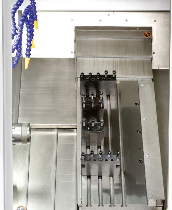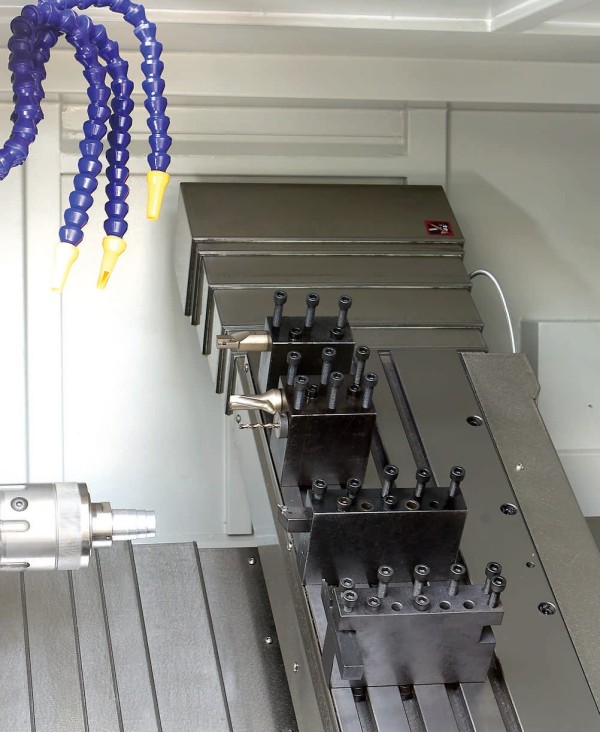 · Lze vybavit revolverovými hlavami, vrtacími hlavami, výkonnými hlavami atd. Elektrickou hlavu lze naklonit od 0° do 90° pro integrované frézování a soustružení.